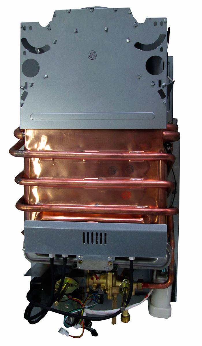 - Медный теплообменник защищен от образования накипи, изготовлен без применения свинца;
